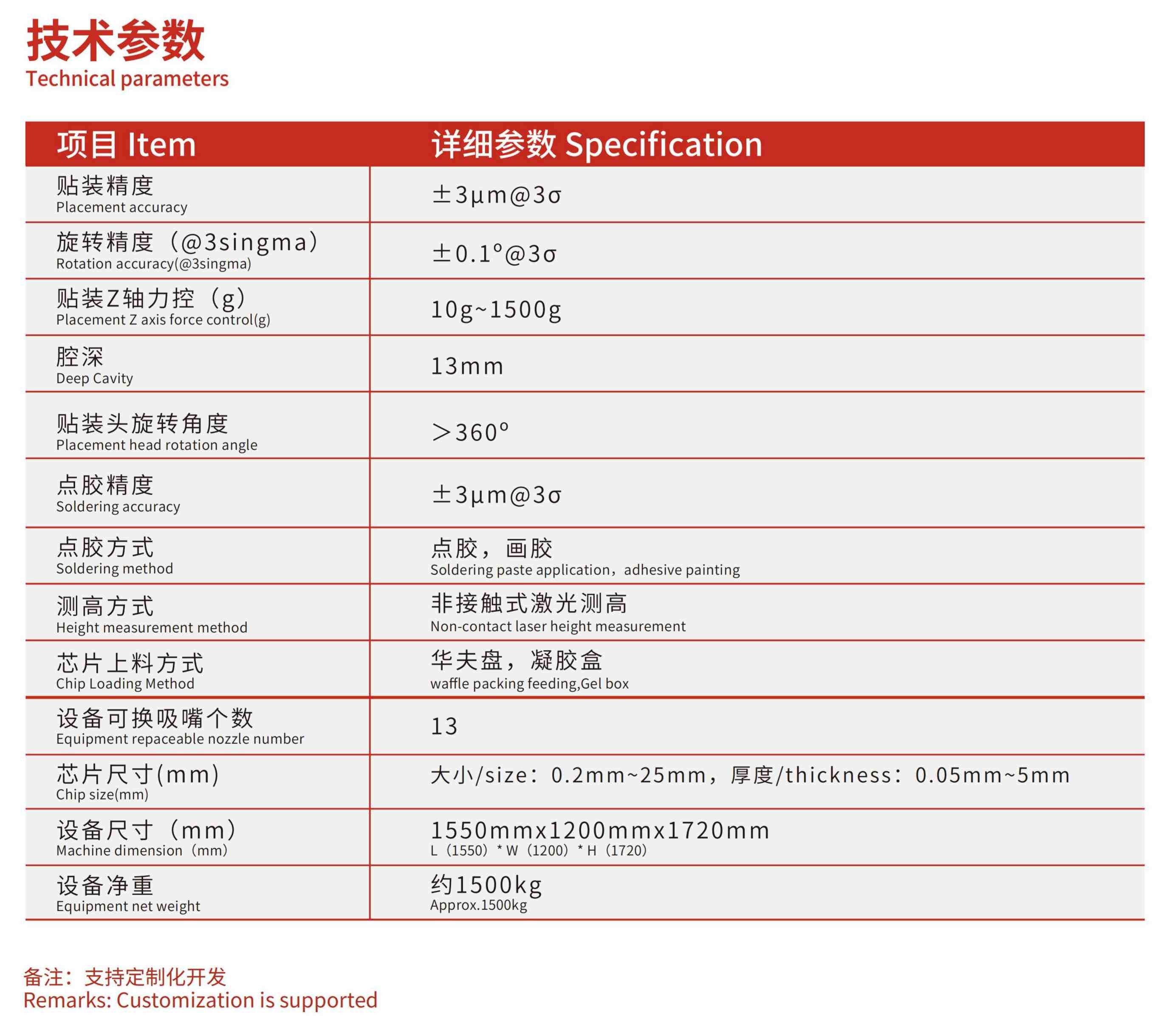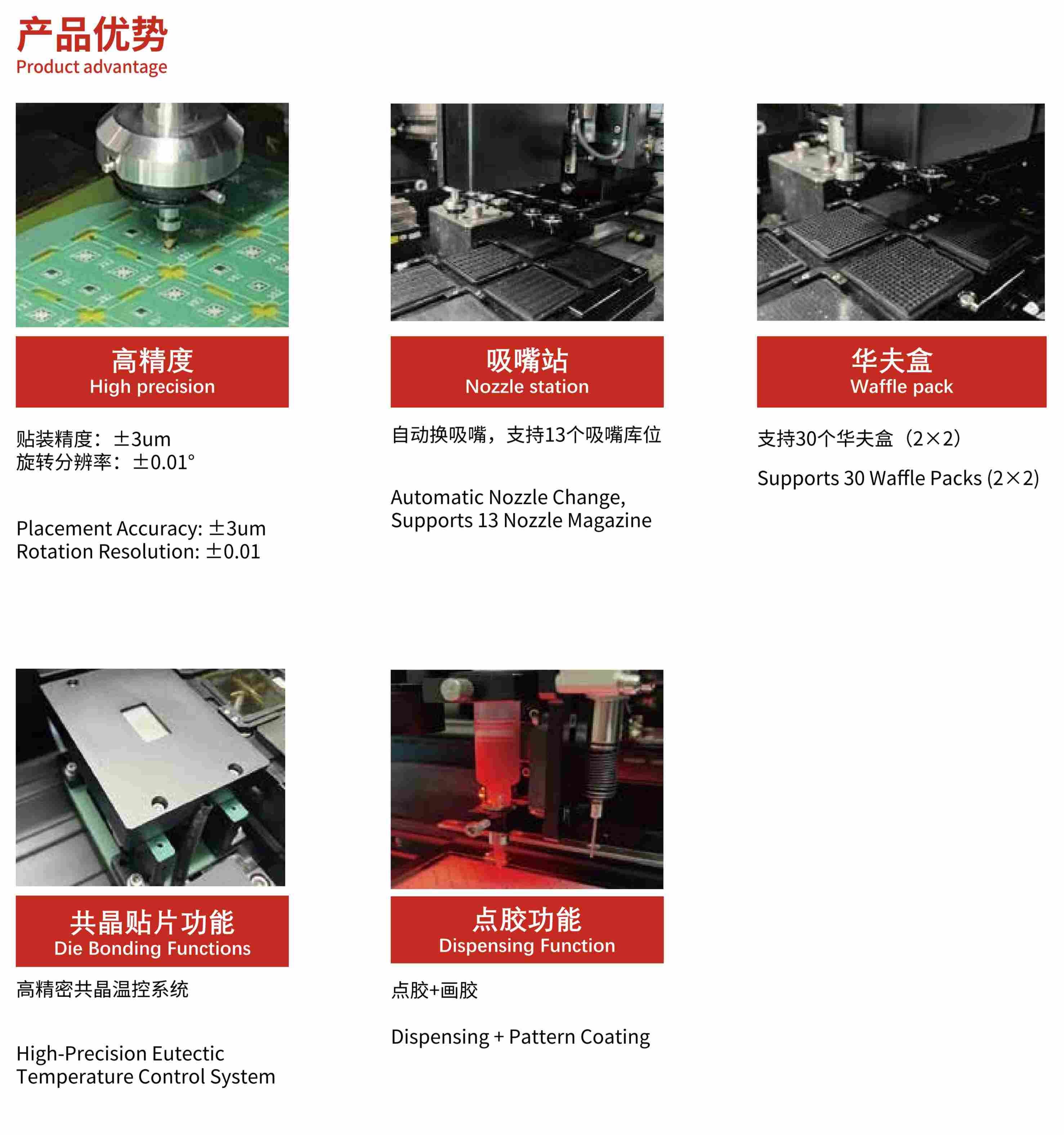多芯片處理能力高; 支持24種不同型號的芯片貼裝。